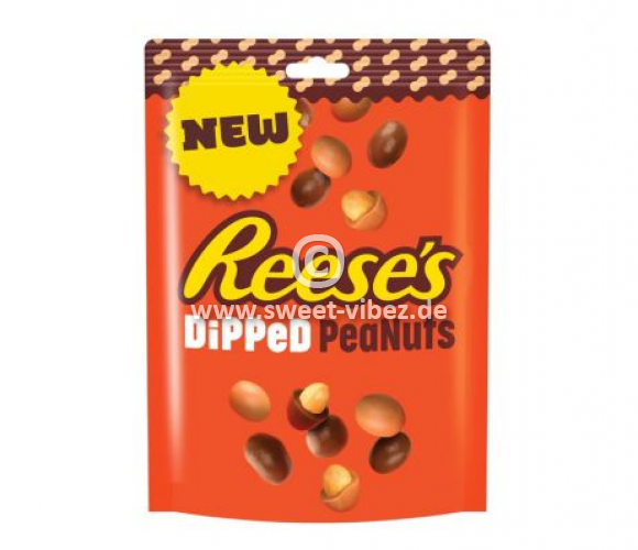 Reese’s Dipped Peanuts sind knackige, geröstete Erdnüsse, die zunächst mit einer cremigen Erdnussbutter-Schicht überzogen und anschließend in zarte Milchschokolade getaucht werden. Diese doppelte Ummantelung sorgt für den unverwechselbaren Reese’s-Geschmack – eine perfekte Mischung aus süß, salzig und nussig.